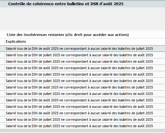 En faisant un clique droit contrôle DSN/BULLETIN, j’ai ce message