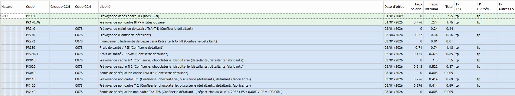 Vous venez de mettre une MAJ prévoyance sur la CCN Chocolaterie en créant la PX110 mais sans annuler les taux de la PR270 qui remonte également sur le bulletin.