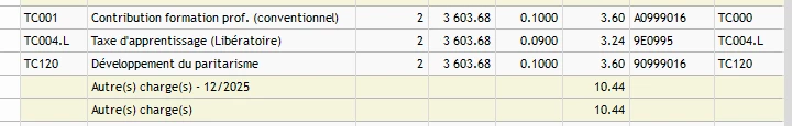 J’ai 3 lignes de cotisations non rattachées à un organisme dans mon tableau des charges : la contribution formation prof, la taxe d’apprentissage et le développement paritarisme.
