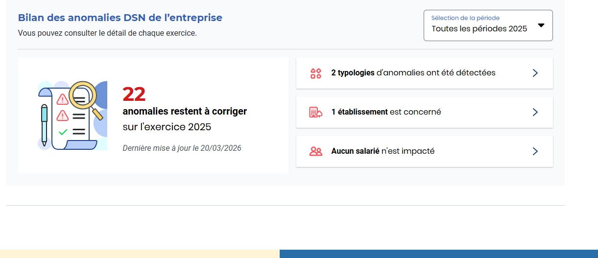 J’ai reçu des courriers de l’URSSAF mentionnant des anomalies déclaratives Néanmoins, quand je me connecte dans mon suivi DSN, je n’ai pas d’anomalies substituables détectées :