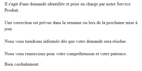 Confirmation : le correctif sera déployé cette nuit.