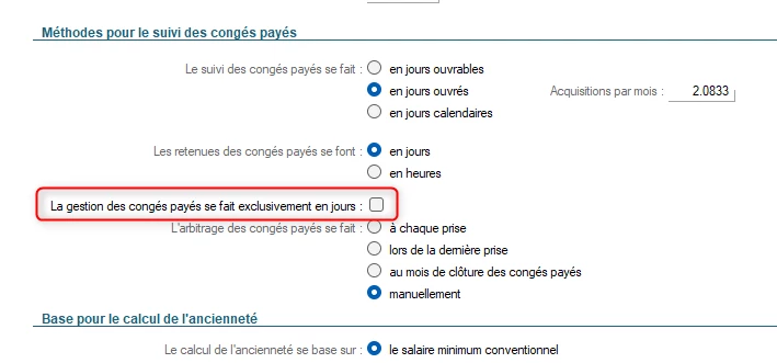 Dans la fiche salarié (ou société), vous avez du cocher gestion des CP uniquement en jours :