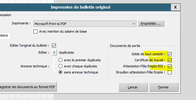 Lors de l’enregistrement des bulletins, peut-on avoir les documents de sortie (certificat de travail et recu pour STC) dans un autre pdf et pas à la suite du STC?