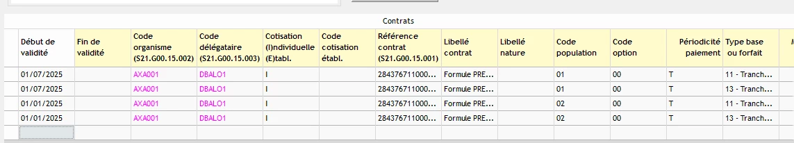 Dans la saisie des organismes, les deux contrats sont crées en RPO dans 2 bloc différents.
