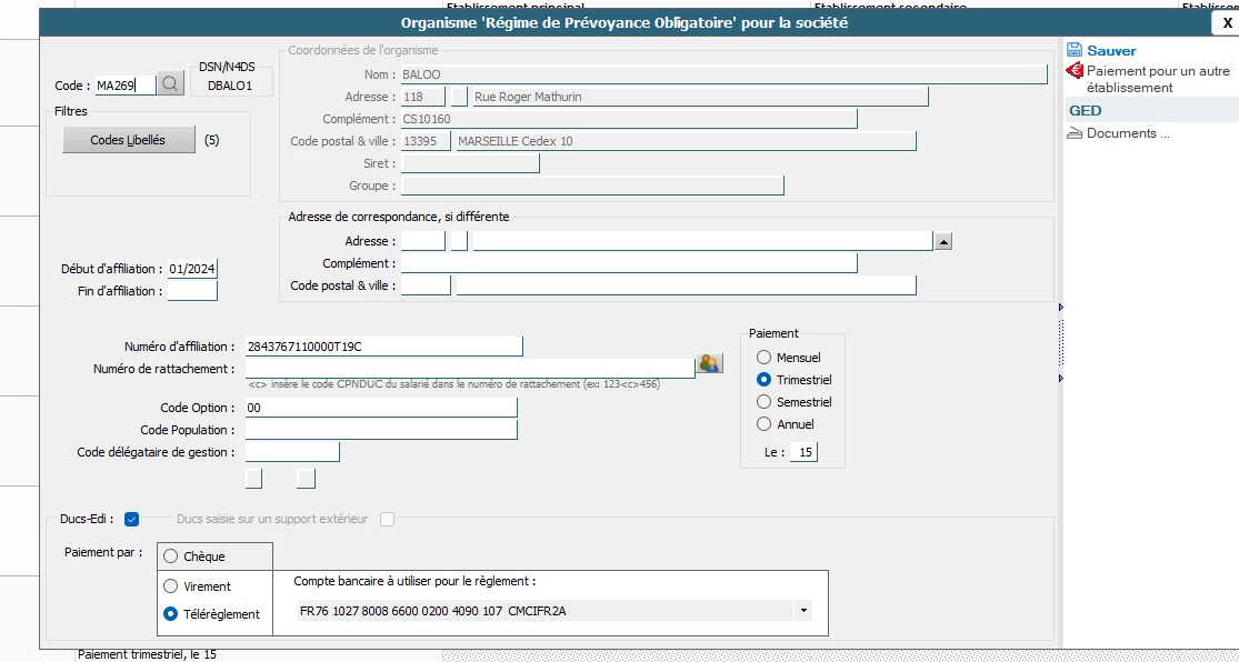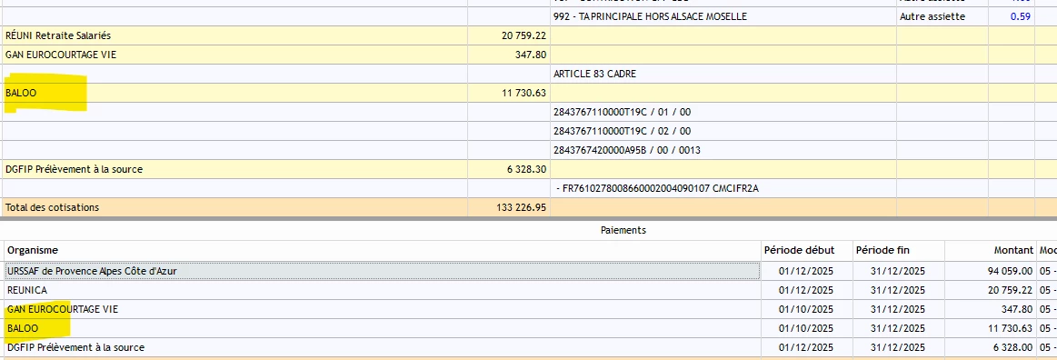 Cependant lorsque je génère la dsn, seul une ligne s’affiche avec le cumul des cotisations mutuelle + prev. Il n’y a pas deux lignes distinctes de cotisation en DSN.