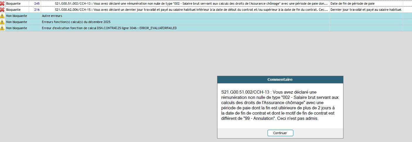 Cependant j’ai un message d’erreur - DSN bloquante -