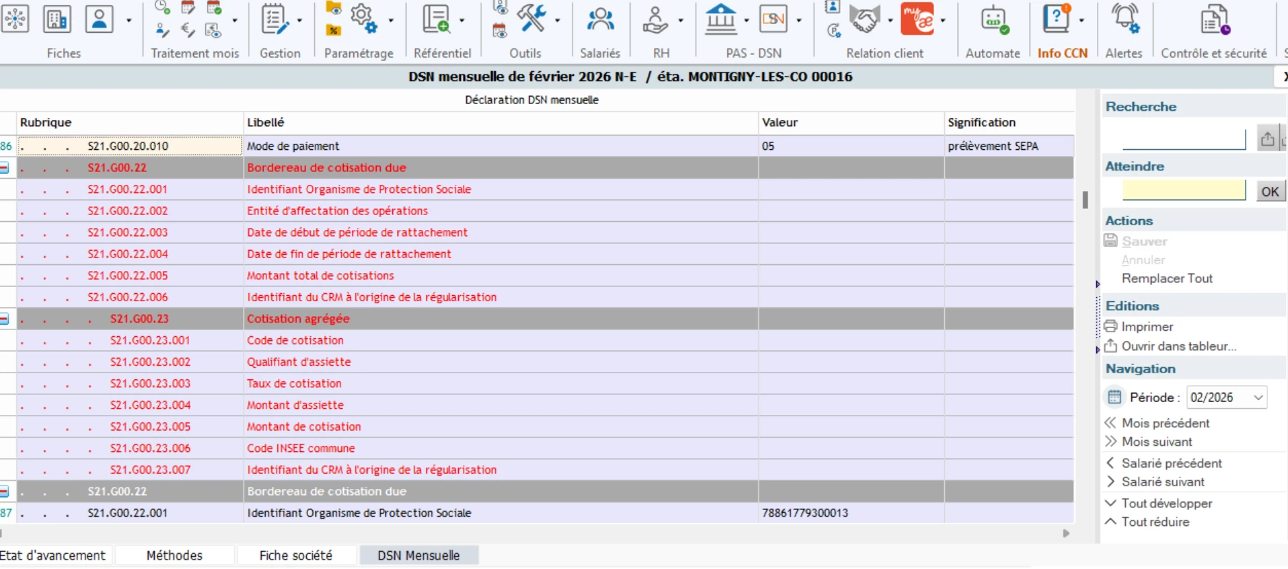 • Puis effectuer la même manipulation dans le S21.G00.23 pour la cotisation agrégée, comme indiqué dans l’image ci-dessous.