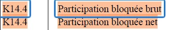 colonne045=CumulLignesResultatSSelonlibelle("K14.4","","","","Participation bloquée net")
