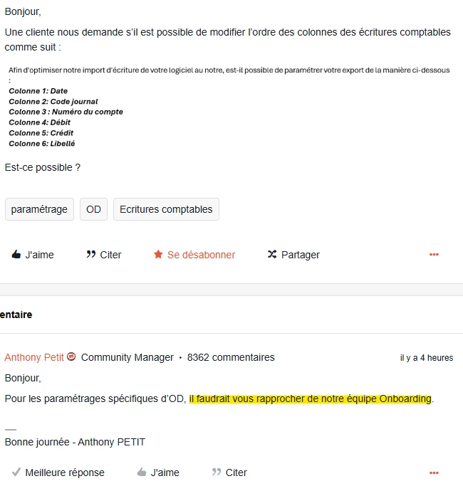 Comment se rapprocher de l’équipe Onboarding suite à un retour d’un Community Manager.