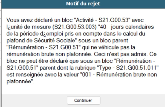 Je rencontre une erreur bloquante lors de l'envoi de l'attestation France Travail pour une salariée.