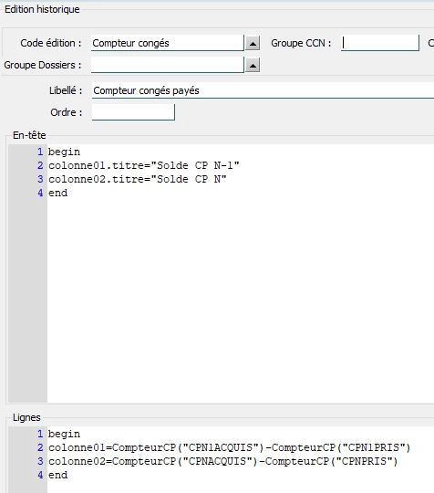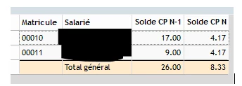 Si la solution proposée par MSCSOCIAL1 ne convient pas, vous pouvez créer une édition historique (soit dans le dossier soit dans paramétrage de paie pour l’avoir pour tous vos dossiers) pour obtenir un tableau avec le nom des salariés, le solde CP N-1 et le solde CP N :