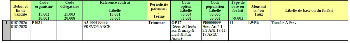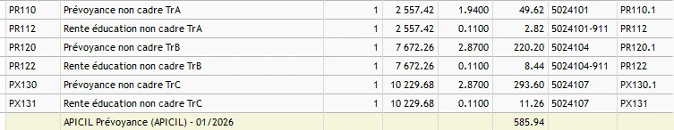 La fiche de paramétrage APICIL au 01/01/2026 est comme suit pour les cadres. Pour information pour les non cadre c’est le même découpage avec les taux non cadre.
