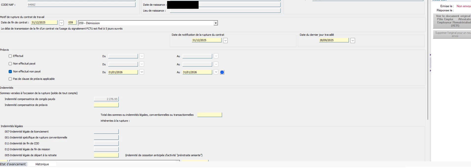 J’ai dû recalculer à plusieurs reprises un bulletin de sortie (démission avec absence non rémunérée du 29/09 au 31/12/2025).