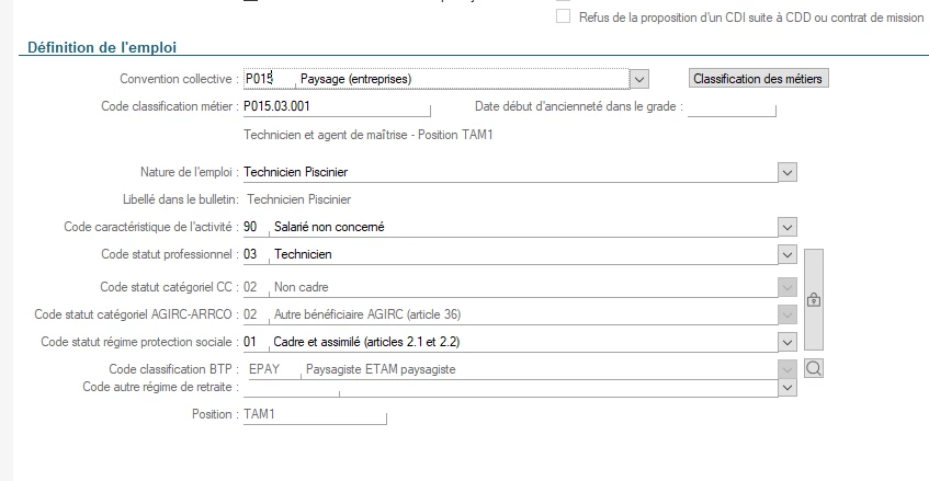 Dans un dossier MSA CCN Paysage, j’ai un salarié Technicien TAM 1, qui dépend du Groupe 3 pour la CPCEA.
