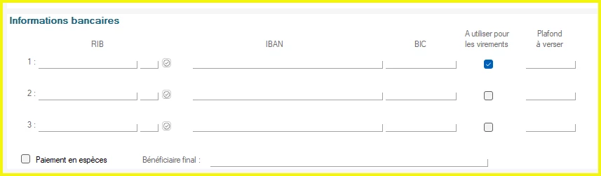 Est-ce que les RIB sont renseignés et est-ce que la coche “A utiliser pour les virements” est activée