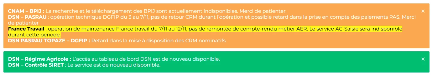 Une opération de maintenance est prévue par France Travail du 7/11 au 12/11, bloquant la remontée des AER :