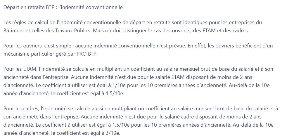 Je me pose la question de savoir si l’indemnité de fin de carrière qui est versée par PROBTP à la demande du salarié ne substitue pas à l’indemnité de départ à la retraite ? Personnellement, je verserai l’indemnité de retraite.