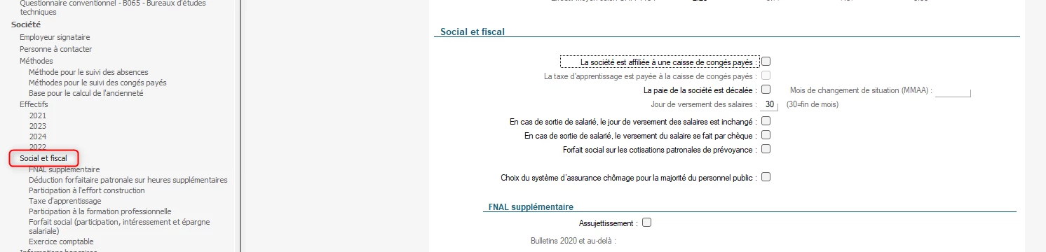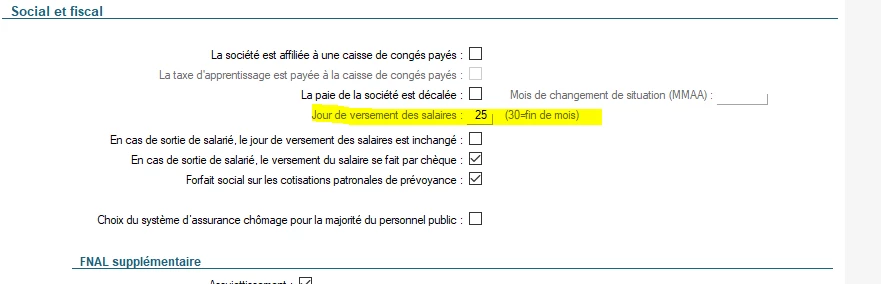 Le jour de versement du salaire n'apparaît plus dans la fiche société ni dans l’établissement secondaire. Comment puis-je changer la date de versement du salaire?