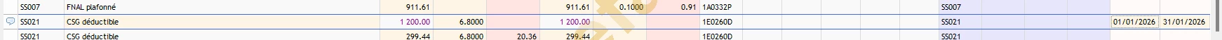 Double cliquer au bout de la ligne pour préciser la période de rattachement (colonne période début)