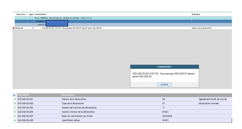 Je voulais envoyer une attestation maladie j’ai cliqué sur voir la déclaration et on m’informe qu’il y a une erreur bloquante et dans la rubrique il y a marqué nature de la déclaration