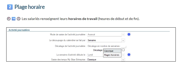 Dans la documentation, il est précisé que la gestion de temps peut se faire en mode “plage horaire”.