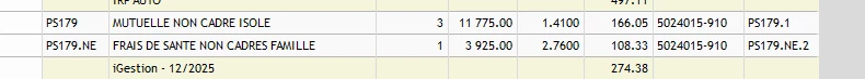 J’ai une mutuelle avec 3 cotisations : isolé duo et famille. Le client ne prend en charge que 50% de la part isolé. donc j’ai créé un PS179 pour la cotisation isolé.