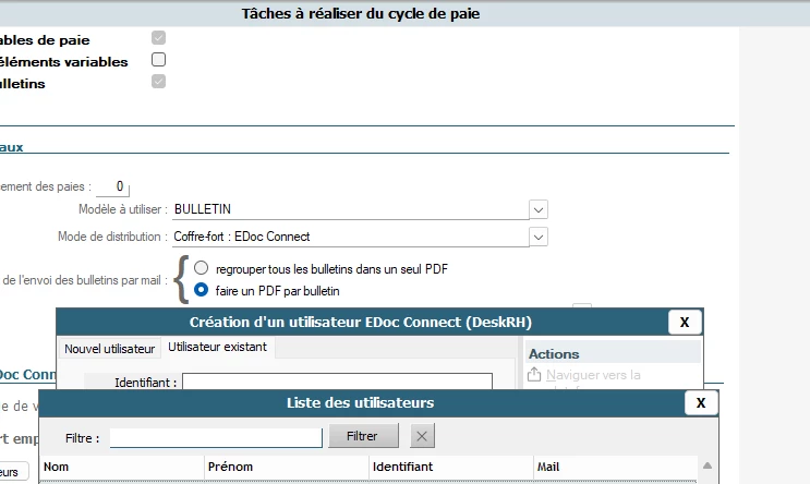 Bonjour, je cherche sûrement mal, j’ai activé l’espace MYSILAE à un de mes clients en Juin 2025. Impossible de déposer les bulletins sur le coffre fort EDOC. J’ai tenté de modifier le paramétrage, de trouver dans l’aide en ligne et la communauté, mais je n’y arrive pas …. quelqu’un a la manip pour pouvoir déposer les bulletins sur EDOC avec MYSILAE actif ? Merci