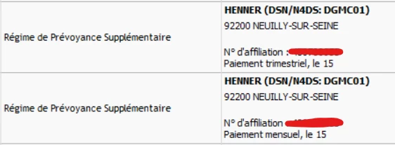 La mutuelle est payé mensuellement, et la prévoyance est payé trimestriellement.