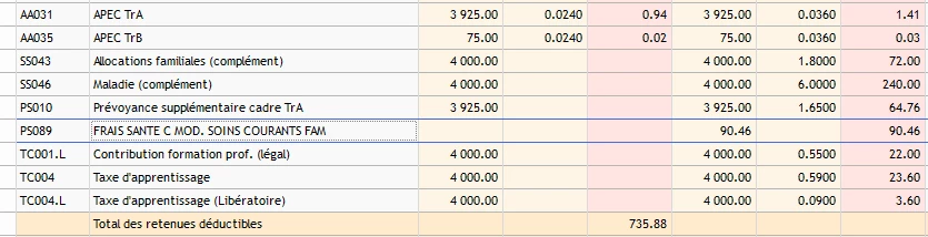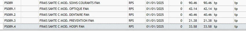 Je viens de paramétrer une cotisation de mutuelle qui se décline en plusieurs modulaires avec des garanties différentes, j’ai donc créé mon taux PS089 (c’est un contrat cadre) que j’ai ensuite décliné en PS089.1, PS089.2….et sur mon bulletin je n’ai que la PS089 qui apparait, quelqu’un sait pourquoi mes autres taux ne s’affiche pas,