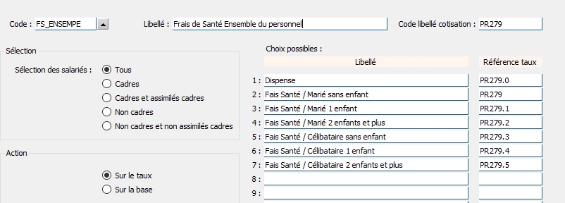 S’il n’y a pas assez de libellé dans les PR et PS cadre ou non cadre, il faudra également utiliser les cotisations pour toute la population commençant par PR2 et PS2 et gérer par la suite avec les contrats complémentaires.