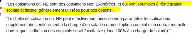 est ce quand cette partie de la cotisation est à la charge du salarié mais que c’est l’employeur qui avance cette partie ? ou est ce quand l’employeur a fait bénéficier à un salarié une option qu’il ne propose pas aux autres salariés pour que la cotisation soit réintégrées ?