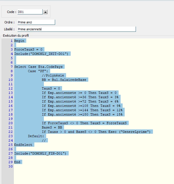 J’ai essayé de créer un profil prime + libellé prime avec les informations trouvées sur diverses conversations mais rien ne se déclenche sur mes bulletins :
