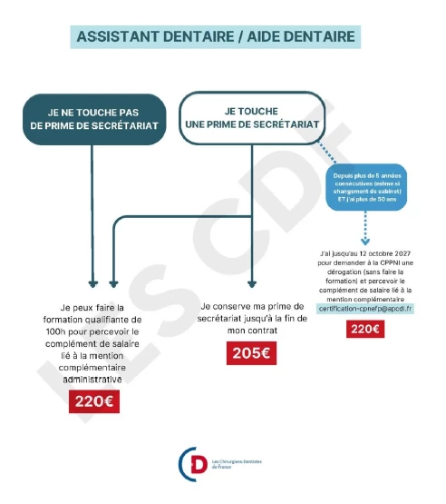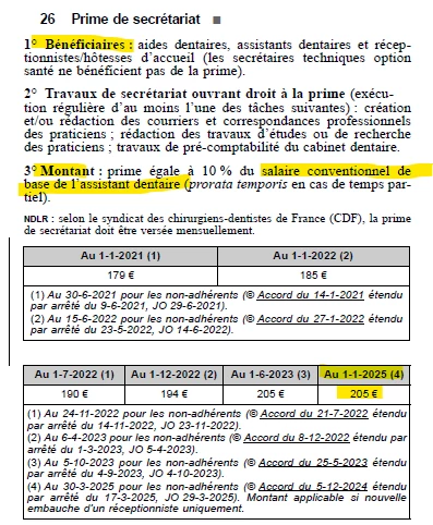 “Montant : 10 % du salaire conventionnel de l'emploi l'assistante dentaire qualifiée, soit 205 € au 1er juin
