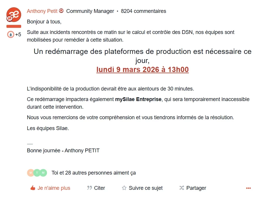 J’ai rouvert Silae, et pour le moment les DSN calculées ne sont pas en anomalie, ça a l’air de fonctionner.