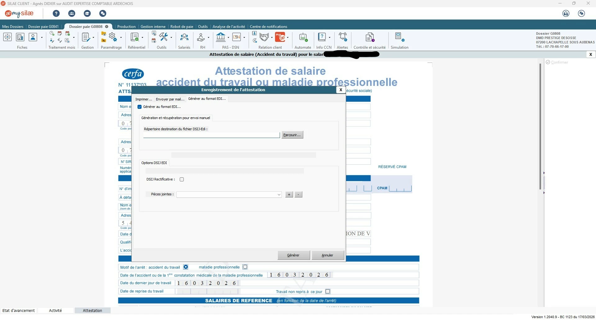 Je ne peux pas envoyer mon EDI pour un accident du travail, je ne peux que l’enregistrer.