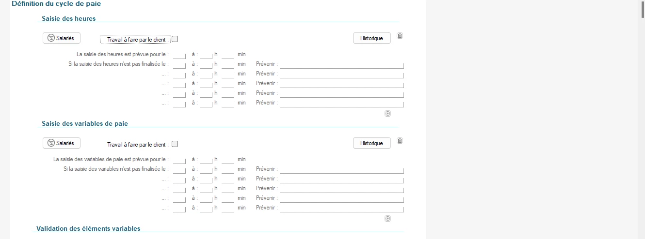 Bonjour, est-il possible de programme un message à destination du client pour l’inviter à se manifester pour l’envoi des ses éléments de paie ; cela éviterai de devoir rappeler le client
