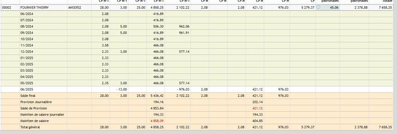 Notre client nous à fait un récapitulatif des jours acquis et pris au 31.05.2025.