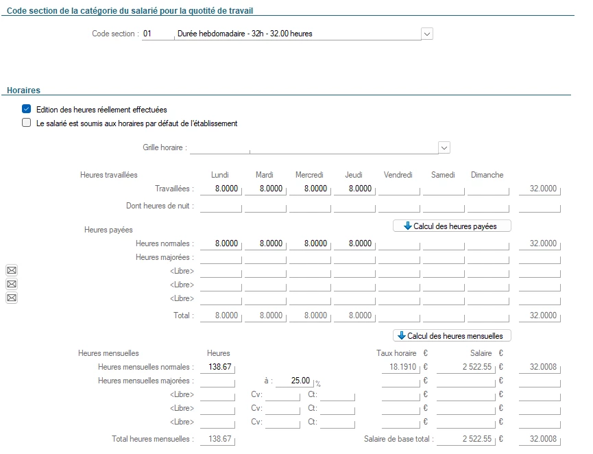 Par contre nous avons dû mal comprendre ou mal faire, par exemple un salarié à 32h par semaine, nous avons renseigné dans le code section de la catégorie du salarié pour la quotité de travail 32h, dans sa grille horaire on a mis aussi 32h. Pourquoi dans le bulletin de paie le plafond de sécurité social n’est pas proratisé ?