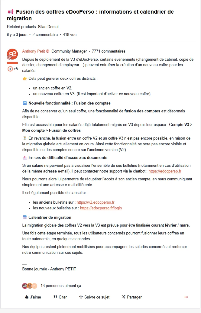 Les salariés ont perdu l’historique de leurs bulletins sur edoc.