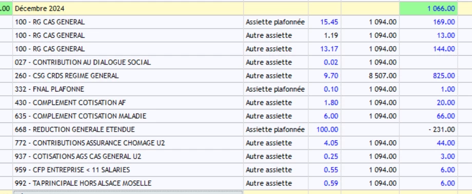 Au niveau de la dsn je devrais avoir seulement le paiement de la csg/crds pour 719.63 euros correspondant au bulletin sup du mois de 12/2024 ci-dessus.