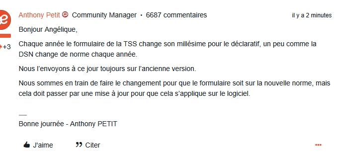 La déclaration mensuelle de taxe sur salaires est rejetée ce mois-ci pour cause de problème de millésime: