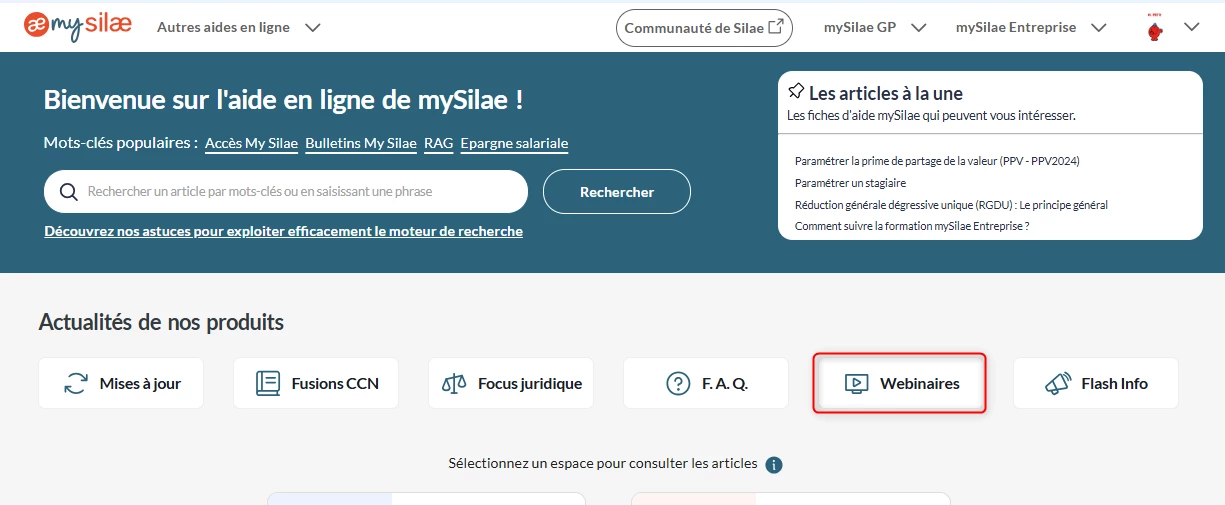 Dans l’aide en ligne / My Silae GP / Webinaires, le dernier en date que l’on peut visualiser date du 15/09/2025.