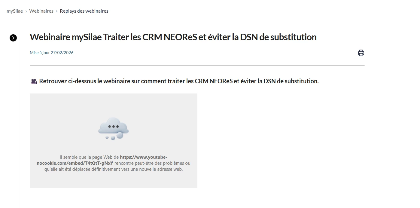 Nous n’avons pas eu non plus le replay pour le webinaire “traiter les CRM NEORES et éviter la DSN de substitution”. Est-ce du fait qu’un autre webinaire est prévu en Mars ?