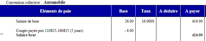 J’ai une salariée qui a pris la semaine du 15 août en congés payés, ce qui correspond à 5 jours de congés pris.
