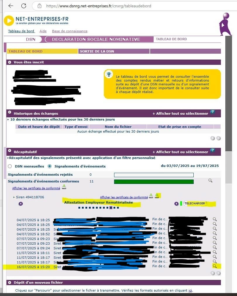 Mon client me réclame l'attestation France Travail et à ce jour je n'ai pas reçu le retour de cette attestation.