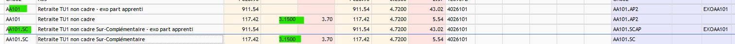 J’ai un dossier pour lequel nous avons de la retraite sur complémentaire mais uniquement pour les cadres donc paramétré sur la cotisation AA001.SC. Sur 01 et 02/26 pas eu de souci mais sur 03/26 j’ai de la sur complémentaire qui s’enclenche pour les apprentis alors qu’ils ne sont pas cadre. Cela me déclenche 2 lignes de cotisations sur AA101 et AA101.SC avec taux identiques.
