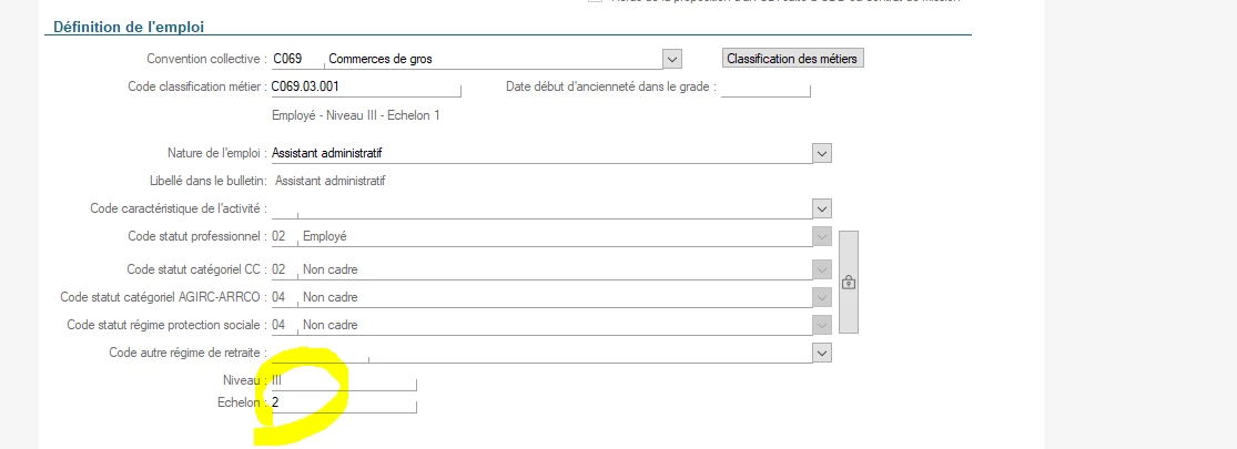 Par ailleurs, bien que je sélectionne “Niveau III échelon I”, la remontée automatique sur le bulletin de salaire indique “Niveau III échelon II”.