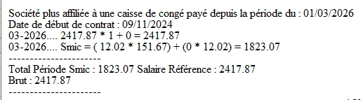J’ai un souci sur un dossier cabinet dentaire. Mon SMIC cumulé à fin mars ne reprend pas janvier et février alors qu’il n’y a pas eu de changement dans la fiche contrat. J’ai une indication qui me dit que la société n’est plus affiliée à une caisse de congé payé depuis le 1/3/26.