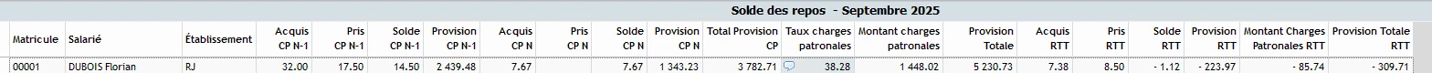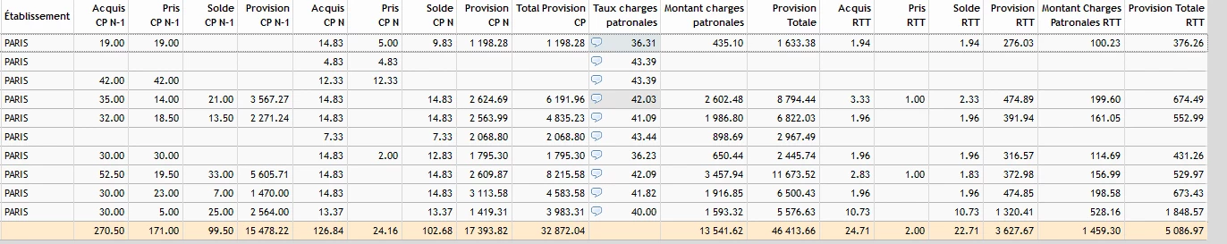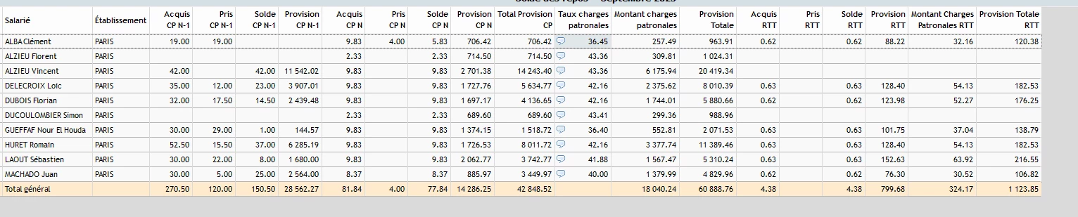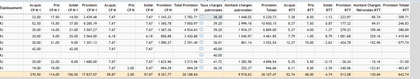 Certaines provisions CP sont en écart pourquoi? comment est calculé le taux de charges patronales ainsi que le montant de charges même chose pour les RTT?
