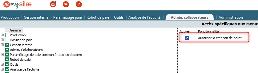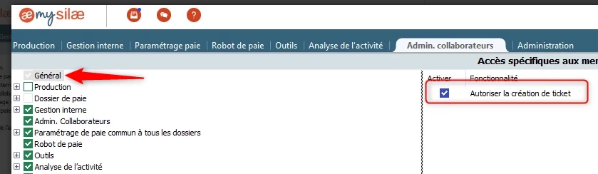 Il faudrait alors regarder dans l’admin collaborateur, sur l’identifiant concerné, Droit / Accéder à la gestion des droits :